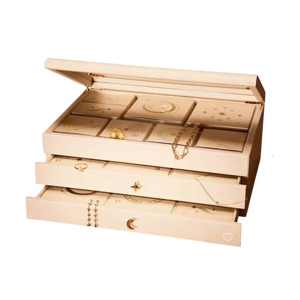 • Versions disponibles : Calendrier 12 jours (finition Or ou Argent), Calendrier 24 jours (finition Or ou Argent), Calendrier 24 jours Luxe (finition Or 14k)