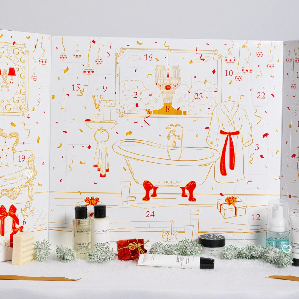 Découvrez le Calendrier de l'Avent Gemmologie 2025, une collection beauté premium de 24 jours qui transforme votre routine quotidienne en rituel de luxe parisien. Cette édition exclusive réunit 24 produits cosmétiques aux minéraux précieux inspirés du Saphir, Diamant, Malachite et Rubis, offrant plus de 400€ de soins visage et corps dans un écrin élégant orné d'un ruban rouge. Chaque jour révèle une nouvelle surprise beauté aux textures sensorielles et fragrances délicates, incluant 4 produits taille réelle, des best-sellers incontournables et des formulations exclusives développées par les experts en cosmétologie minérale. Plus qu'un simple calendrier, c'est une expérience de découverte quotidienne qui prépare votre peau aux festivités tout en vous offrant un moment de détente et de bien-être, le tout dans l'esprit raffiné de l'art de vivre français.